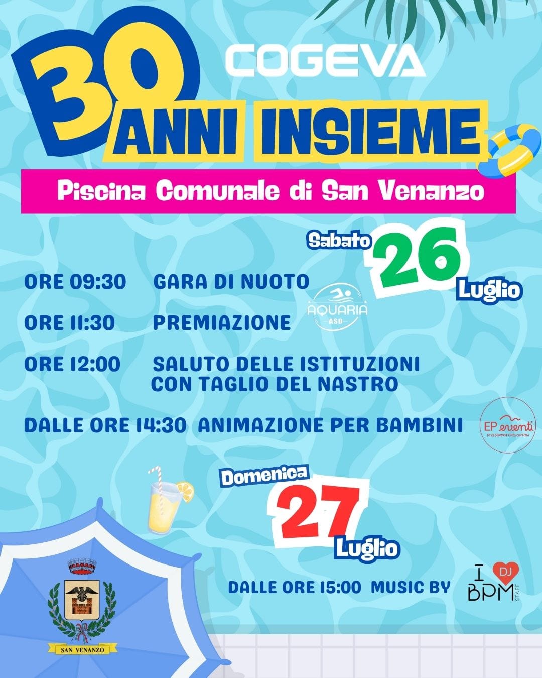 Vi aspettiamo sabato 26 e domenica 27 luglio alla Piscina Comunale di San Venanzo per celebrare insieme questo traguardo speciale!